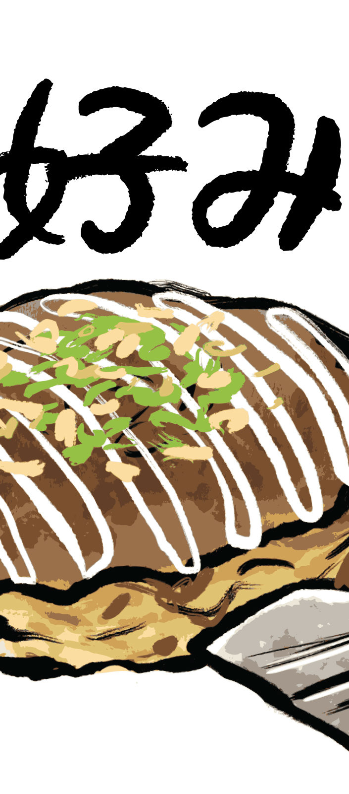 焼き上がったお好み焼きに、ソース・マヨネーズ・かつお節をトッピング。